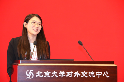 北大新闻与传播学院硕士研究生刘婵作为学生代表发言。刘婵从在北大学习、生活的经历出发,表达了她对跨文化交流的思考,对即将开始的课程学习充满期待。