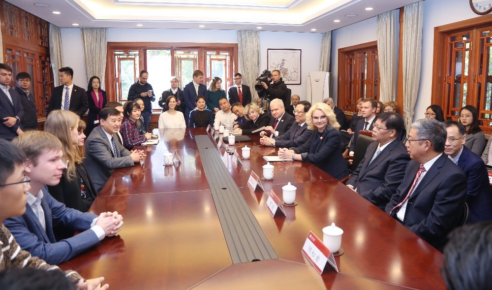 2018年10月30日,俄罗斯联邦政府副总理戈利科娃(ГОЛИКОВА Татьяна Алексеевна)访问北京大学,俄罗斯科学和高等教育部副部长博罗弗斯卡娅(БОРОВСКАЯ Марина Александровна)、俄罗斯联邦驻华特命全权大使杰尼索夫(ДЕНИСОВ Андрей Иванович)、中国驻俄罗斯大使馆公使衔参赞于继海等陪同访问。北京大学书记邱水平、校长郝平、副校长田刚等在临湖轩接待了戈利科娃副总理一行。