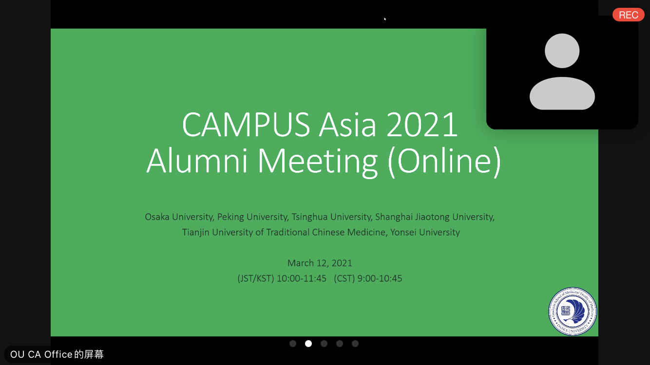 2021年3月11日至12日,亚洲校园计划公共卫生领袖人才培养项目年会在ZOOM会议室召开。中方(北京大学、清华大学、上海交通大学、天津中医药大学)、日方(大阪大学)、韩方(延世大学),项目高校合计三十余人出席会议。医学部国际合作处徐白羽教授、学院王培玉副院长、胡永华教授、任涛副院长、史宇晖副教授、高文静副教授、教办主任魏雪涛副教授、党院办主任刘杰参会。