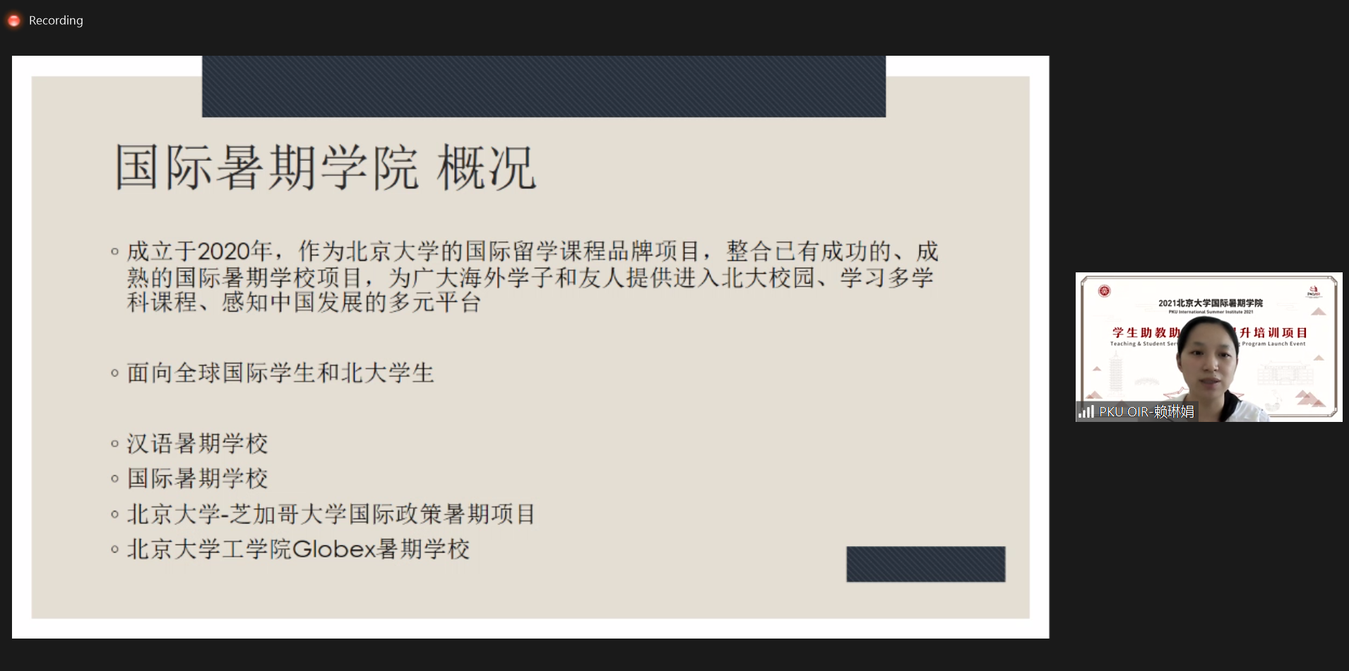 6月18日下午,2021年北京大学暑期学院助教助管培训第三讲:志愿服务的原则与经验分享活动在线上举行。