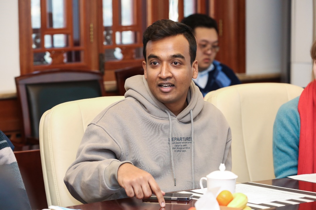 同学们在座谈会上分享了各自的冬奥情缘。元培学院2019级孟加拉籍本科生阳光(MD MAHEDI HASSAN, SUNNY)曾是2019年国庆70周年游行方阵“人类命运共同体”中的一员。那次经历让他备受鼓舞,决心不断实践,体悟中国的发展脉搏。中国共产党成立100周年的2021年,阳光作为北大留学生“知·行计划”成员赴江西、新疆研学参访,用自己的镜头记录下许多美丽中国的瞬间。此次能作为开幕式演员见证冬奥盛会,他表示倍感期待与自豪,将继续用自己独特的视角记录中国,让更多人看到真实、友好、温暖的中国。