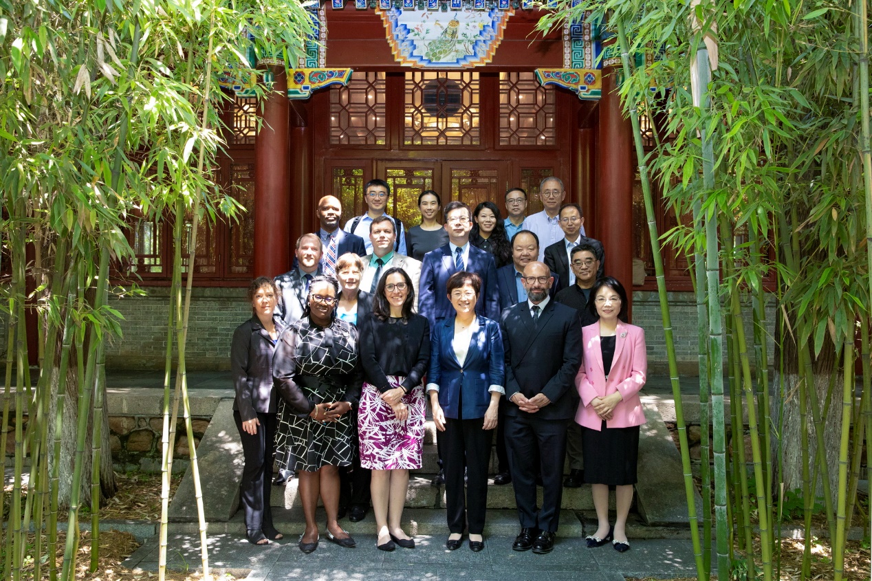 2023年6月14日上午,美国食品药品管理局(FDA)副局长安迪·弗里斯特德(Andi Lipstein Fristedt)、副局长杨渡(Mark Abdoo)一行到访北京大学,北京大学常务副校长、医学部主任乔杰在临湖轩会见代表团一行。