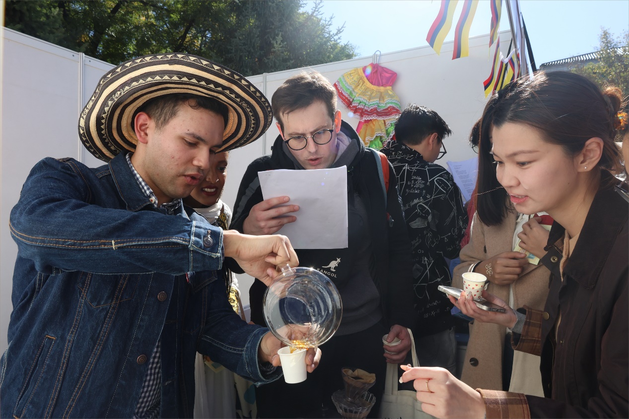 独具特色的美食、精美的民族服饰、充满异国风情的艺术表演……琳琅满目的展台间,留学生们与参加活动的师生亲切交流互动,空气里洋溢着节日的气氛。让我们跟随镜头走进国际文化节现场,感受来自不同国度的文化魅力。