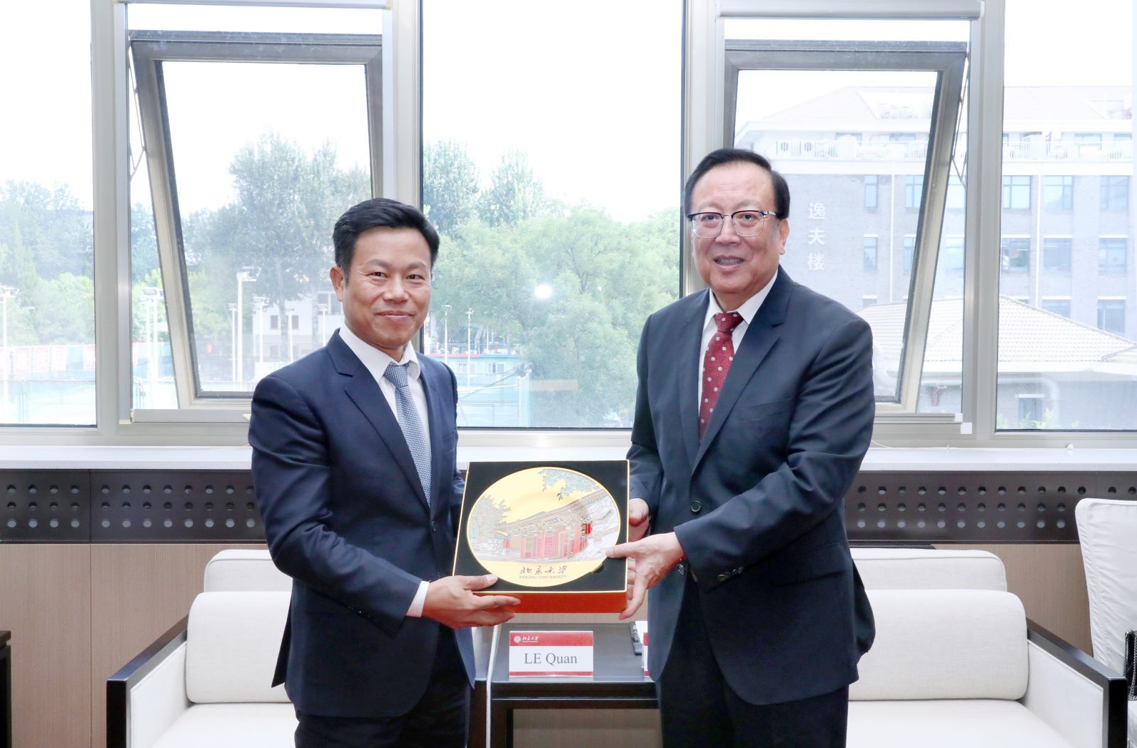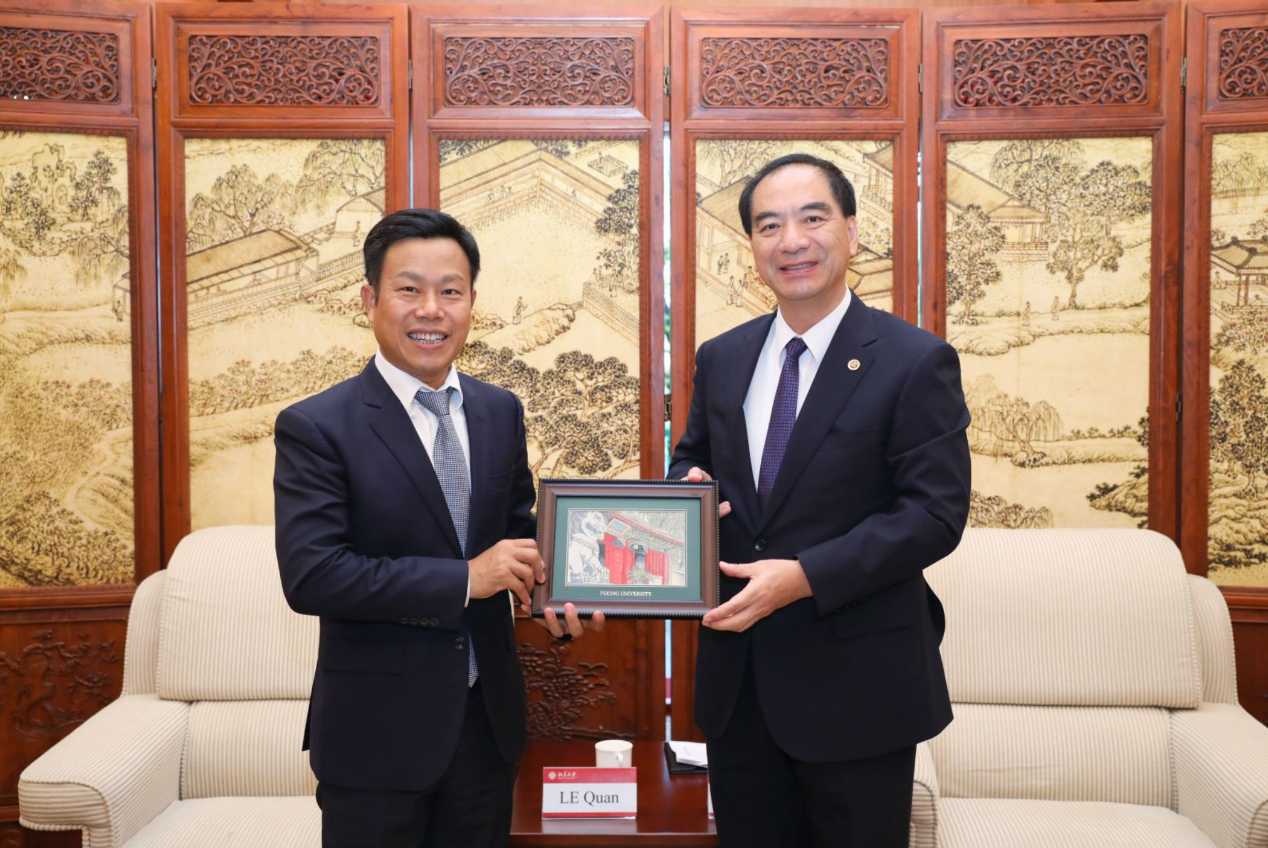 8月28日,越南全国人大代表、河内国家大学董事长、党委书记、校长黎君率代表团访问北京大学。北京大学党委书记、校务委员会主任郝平,校长龚旗煌分别会见来宾。校党委副书记、副校长宁琦参加会见交流。