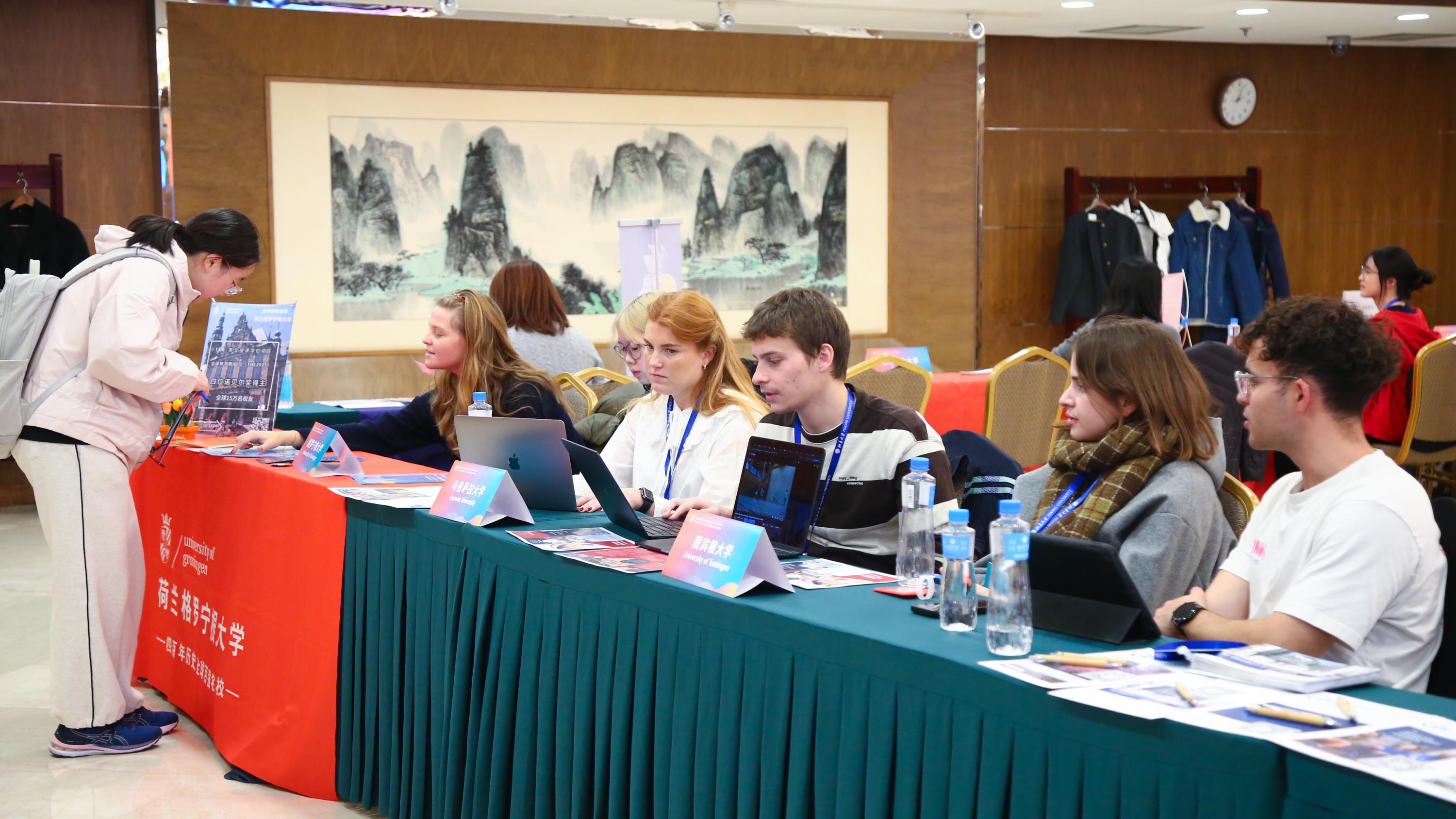 本次教育展还特别安排了留学安全教育专场培训,邀请外交部领事保护中心缪宏波参赞和中国政法大学何启豪教授,为同学们就领事保护、境外反诈,法律保护等主题进行宣讲。此外,国际合作部详细介绍了学生海外学习项目及港澳台交流项目的申请流程、奖学金、学分转换等情况,并邀请曾参加海外学习项目和国际组织实习项目的同学分享他们的经历。