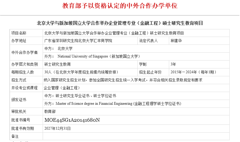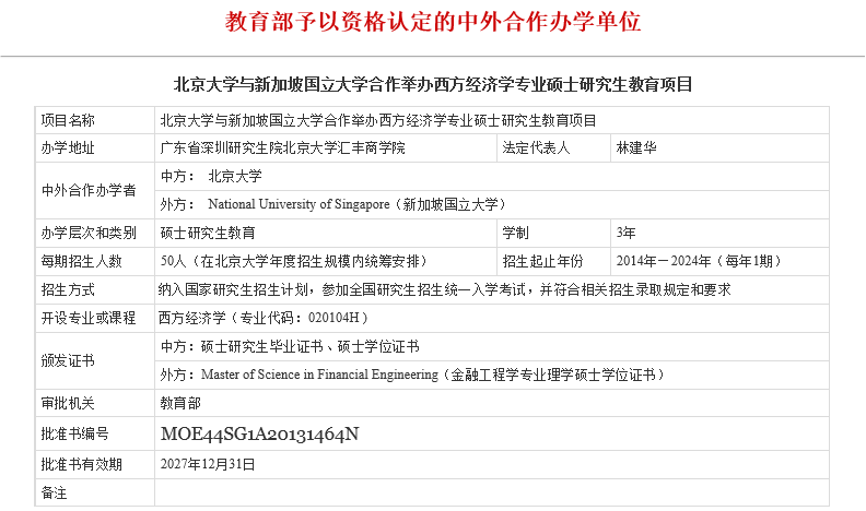 北京大学经济学(管理学)与新加坡国立大学金融工程学双硕士