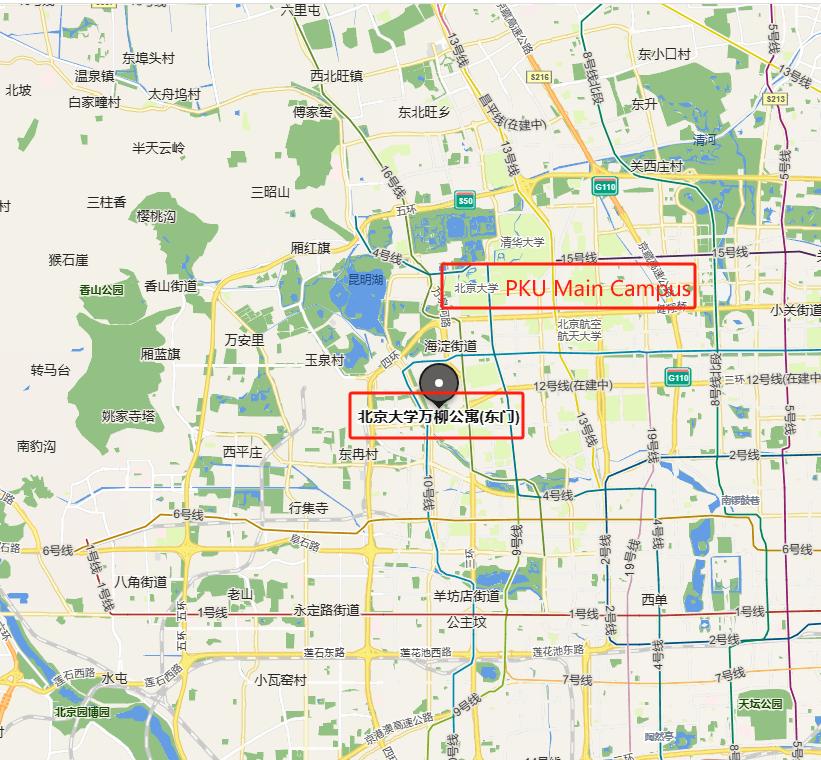 WANLIU Campus is located at No. 29 Wanliu Middle Road, Haidian District, with a total construction area of 100,600 square meters, including student dormitories, faculty and staff apartments, convenience store, cafe, gym, etc. It is about 4.2 km away from the main campus of Peking University. You can ride a bike or take a bus to the main campus. School buses are not provided in summer.