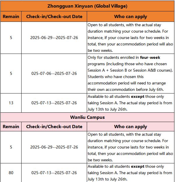 3. We cannot accommodate special requests for dormitory preferences. If you have specific needs, we recommend considering off-campus accommodation.
