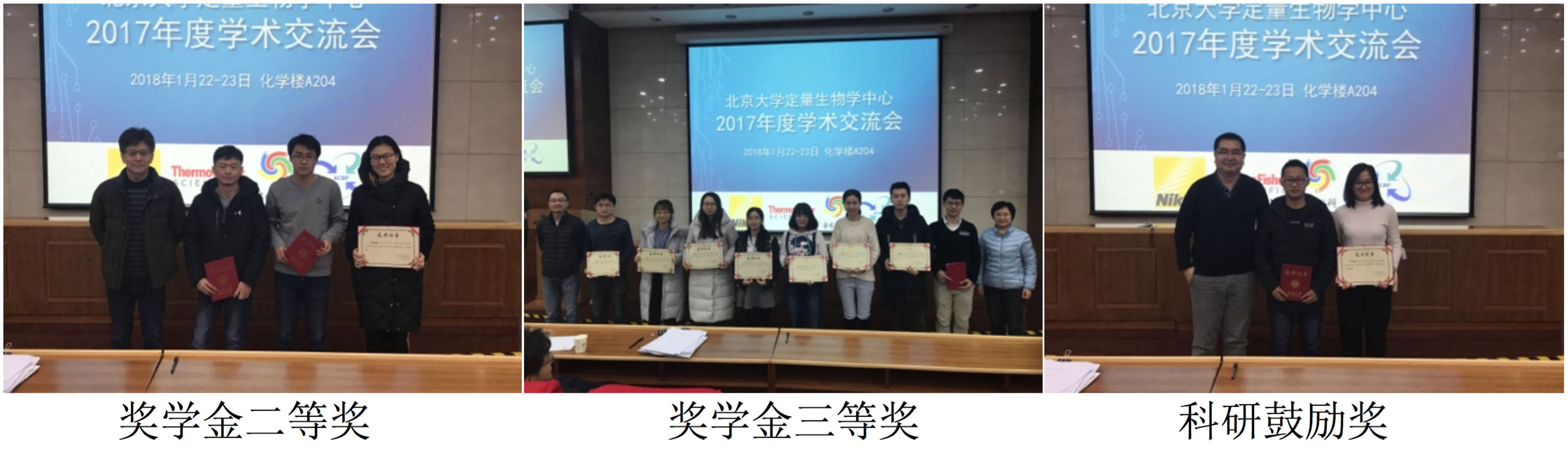 本次会议共评选出6支“头脑风暴”获奖团队,其中1等奖1名,二等奖2名,三等奖3名;评选出10名优秀墙报奖,其中一等奖1名,二等奖3名,三等奖6名。此外,会议还颁布了2017年度“定量生物学研究”奖学金,张志博等4人获得二等奖,江小青等9人获得三等奖,尹佩佩等2人获得科研鼓励奖。