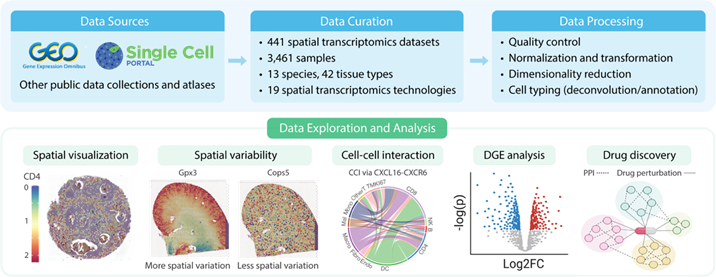 2025年6月11日,北京大学定量生物学中心曾泽贤课题组与合作者在Science Advances上发表了研究论文SOAR elucidates biological insights and empowers drug discovery through spatial transcriptomics。在本研究中,作者开发了SOAR(Spatial transcriptOmics Analysis Resource,https://soar.fsm.northwestern.edu/)。SOAR是一个集空间组学数据整合与系统分析于一体的数据库与平台。通过挖掘不同疾病状态下组织微环境中细胞的空间分布与基因表达的变化,SOAR 能够系统性地识别关键的通路、潜在的治疗靶点与相关药物,进而为疾病机制解析和药物研发提供数据基础和分析工具,助力精准医学研究。