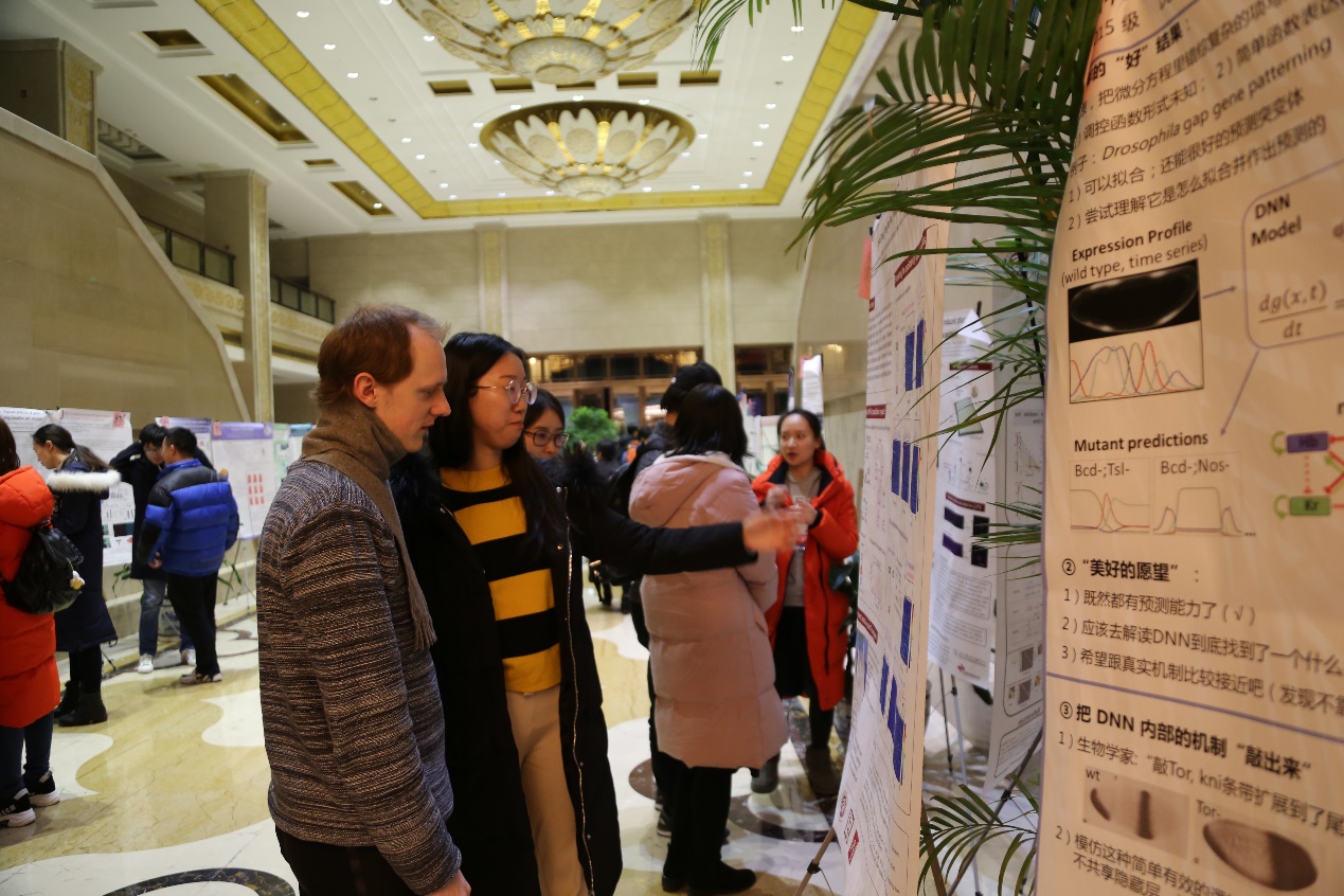 在当晚举行的研究生墙报展讲环节中,150多名中心内、外研究生借此机会与大家分享了自己的研究进展。现场气氛热烈,讨论活跃,来自不同研究组的师生进行了广泛而深入的交流。会议第二天,中心15级的10名博士研究生就研究进展,进行了中期考核答辩。与会老师分别给予了的点评,及对课题进一步开展的建设性意见。此次会议还颁发了定量生物学奖学金与优秀墙报奖,张书文等18位同学获得定量生物学奖学金,秦山山等11位同学获得优秀墙报奖。最后,中心副主任欧阳颀教授致闭幕词,对中心多年来的成果进行了肯定,也恳切地指出了发展中面临的问题和挑战,为今后的工作重点指明了方向。