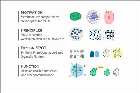 今年,北京大学iGEM团队将"液液相分离"概念引入合成生物学,并藉此成功在酵母细胞中构建了多功能的无膜细胞器平台。在细胞中,相分离能够帮助特定的组分实现灵活的自组织,在局部创造特定的微环境,并根据生命活动的需要进行快速多变的响应。北大iGEM团队利用模块化的同源寡聚肽段和相互作用元件,满足了相分离对于多价相互作用的需求,在酵母细胞中分别构建出自发形成和诱导形成的合成细胞器,实现了不同时间尺度的调控。团队同时基于PDE模型和荧光显微镜实验,对合成细胞器的形成过程进行了半定量的动力学研究,更好地理解了元件参数对系统行为的影响,挖掘精细调控细胞器的潜力。
