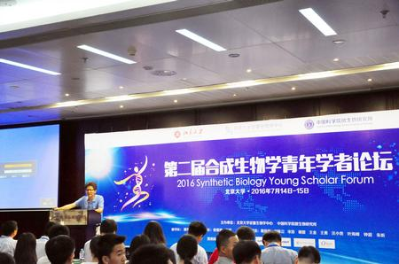 2016年7月14日,第二届合成生物学青年学者论坛于北京大学中关新园正式开幕,前来参会的师生、学者人数大大超出组委会的预期。北京大学前沿交叉学科研究院执行院长、定量生物学中心主任汤超教授出席并致开幕辞。上海交通大学的邓子新院士,美国加州大学旧金山分校的王磊教授,以及美国杜克大学的游凌冲教授应邀做了大会特邀报告。近30名国内外在合成生物学领域取得突出成果的青年科学家分别介绍了其最新的工作进展。