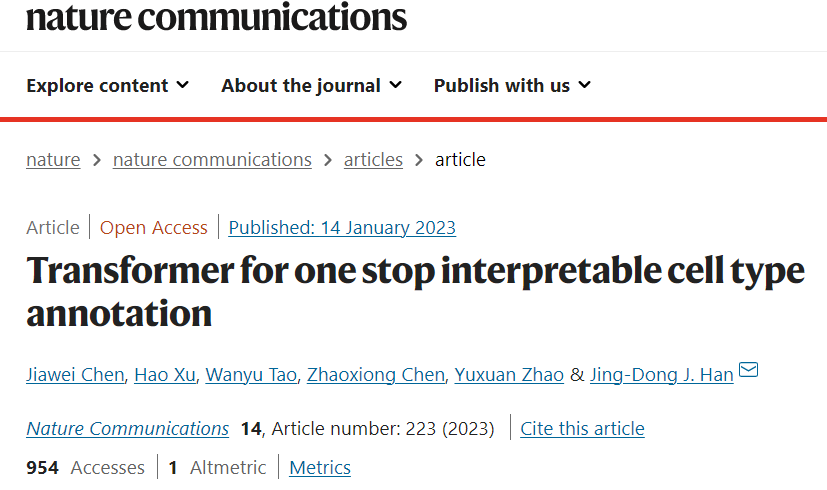 Chen, J., Xu, H., Tao, W. et al. Transformer for one stop interpretable cell type annotation. Nat Commun 14, 223 (2023). https://doi.org/10.1038/s41467-023-35923-4