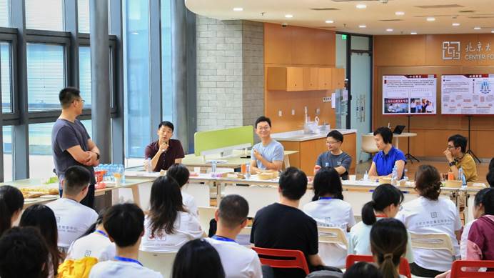除了学术交流和面试环节,中心还组织了营员与在读学生的交流会,让营员们能近距离接触并了解中心内部的真实科研生活。来自中心各个实验室的师兄师姐们,热情洋溢地分享了各自课题组的实验室文化、正在进行的科研项目以及日常的工作环境。面对营员们提出的种种疑问,师兄师姐们耐心细致地一一解答,展现了中心大家庭的温暖与团结。