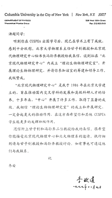 李政道先生给汤超的信