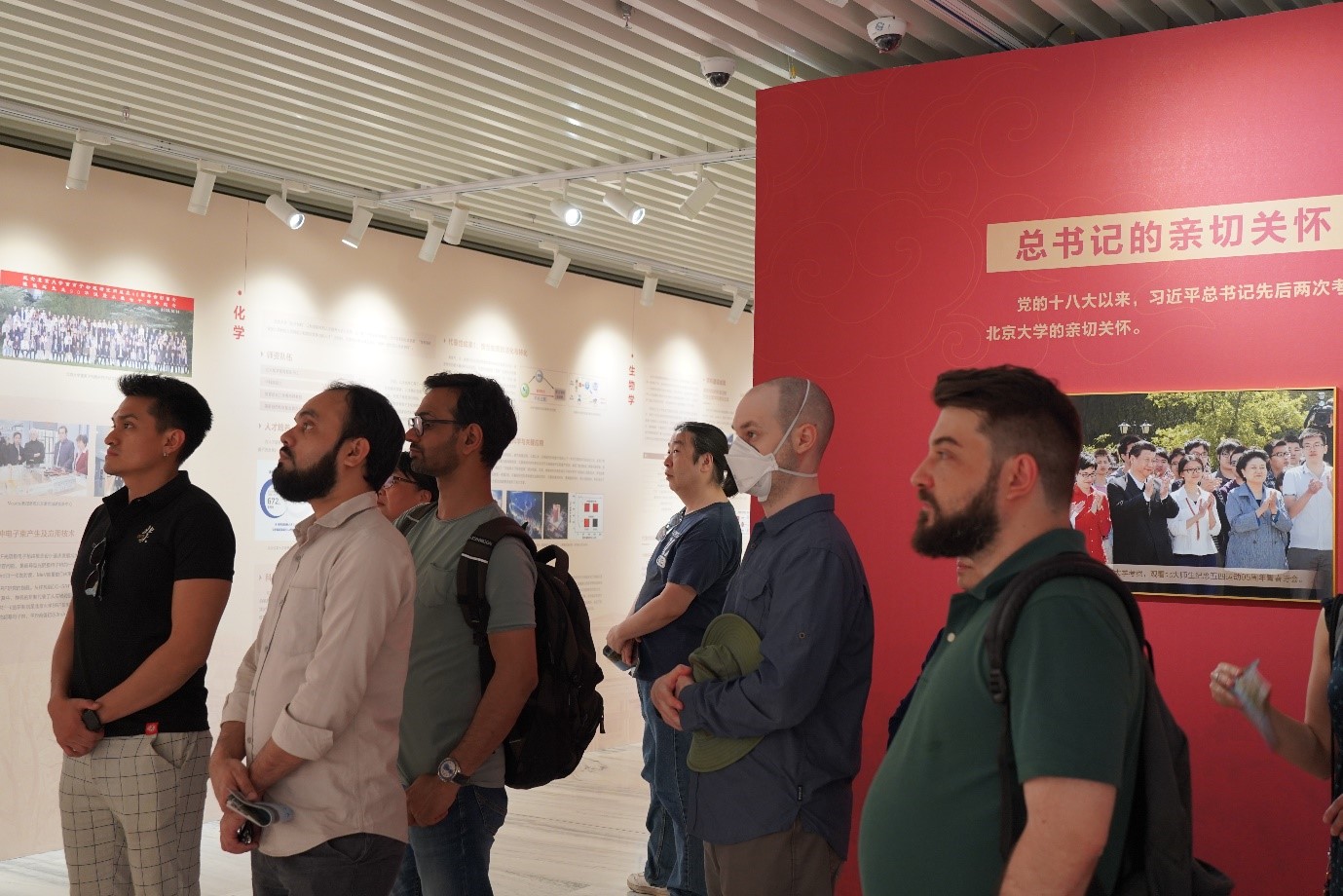 5月8日,北京大学外籍教师俱乐部组织在校外籍教师和外事秘书前往图书馆,观看“北京大学学科建设成就展(2014-2024)”,学习北京大学学科建设整体布局、高素质教师队伍建设、高水平人才培养体系和新时代教育开放格局等有关情况,了解过去十年我校各学科建设发展的重要成果。