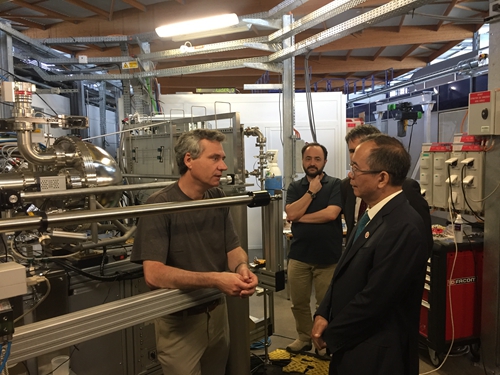 北京大学瑞士校友会在日内瓦成立 结束对瑞士的访问之后,林建华一行到达巴黎,访问了巴黎SOLEIL同步加速中心以及巴黎科研人文大学、索邦城际联盟大学、巴黎萨克莱大学等新整合的大学综合体,深入了解了法国高等教育改革情况并探讨合作。
