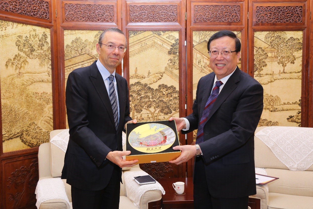 首先,郝平校长对Eric Labaye校长一行的来访表示欢迎,并向对方介绍北大的院系设置等情况,着重介绍了物理、化学及人工智能领域相关学科。随后,各个学科代表老师就学科当前发展概况进行简要介绍。Eric Labaye校长对我校的欢迎表示感谢,回顾了两校在数学领域的双学位项目合作并计划将其合作模式拓展至物理、化学学科。