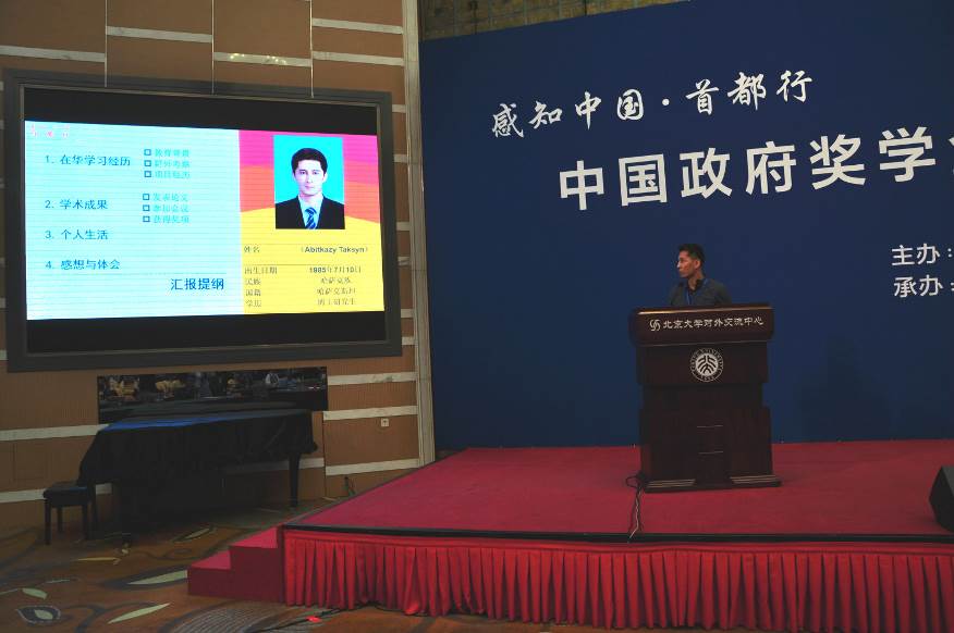 来自地空学院的哈萨克斯坦籍留学生塔斯肯作为北京大学代表发言