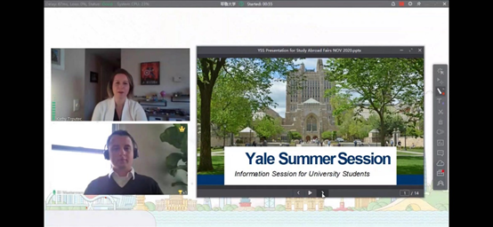 此次教育展宣讲活动共计22场,历时12个小时,单场次最高参与人数500余人次,共计在线参与活动近4600人次。 法国高等教育署项目官员李颖介绍了法国留学新动向及相关法国高校申请相关信息,并回答了学生们提出的关于法国在疫情期间对留学生的保护政策;加州大学学生海外学习项目主任PAULETTE GREISNER分享加州大学各分校申请情况及专业特色;斯坦福大学暑期项目主管Patricia Hall就疫情期间暑期项目的相关细节调整与同学们进行交流;来自国际关系学院现正在联合国日内瓦办事处秘书长办公室实习的欧阳瑞泽同学也向同学们分享了他的实习经历,也与有意愿去国际组织实习的同学交流了申请期间的准备和建议;同时北大学生海外学习项目和港澳台学习项目办公室的老师也向大家介绍了境外学习项目的具体信息和申请流程并回答了同学们关于即将开始的申请季的细节问题。即使未能面对面,大家通过网络高效沟通交流的参与度也有增无减,即使时差相隔,也一样期待复苏见面的日子。