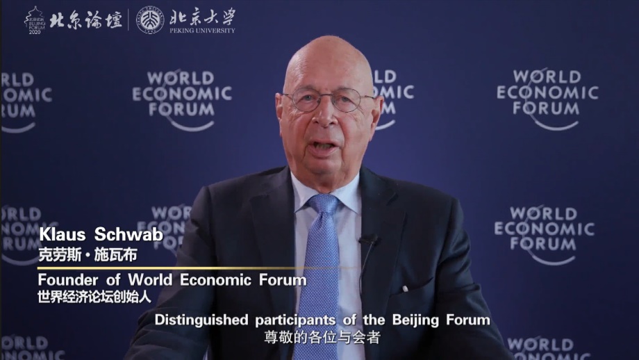 世界经济论坛创始人克劳斯•施瓦布在视频中分享了关于全球化的新挑战与新机遇的思考。他认为,应对全球性挑战需要国际社会各利益相关方携手合作,突出大学在孕育新想法、新理念和推动社会进步所发挥的作用;统筹有形资本与无形资本;着眼长远,统筹社会全面发展;充分利用第四次工业革命成果,重视新技术应用;维护和加强全球团结。施瓦布援引儒家观点,倡导各国应传递“君子”哲学,携手与共,创建“和谐”世界。他高度肯定中国在抗击疫情和振兴国家经济方面的领导力,指出疫情重袭下世界正面临“大重构”的机遇,这或将有利于重启全球化进程、推动全球事务管理的国际合作。