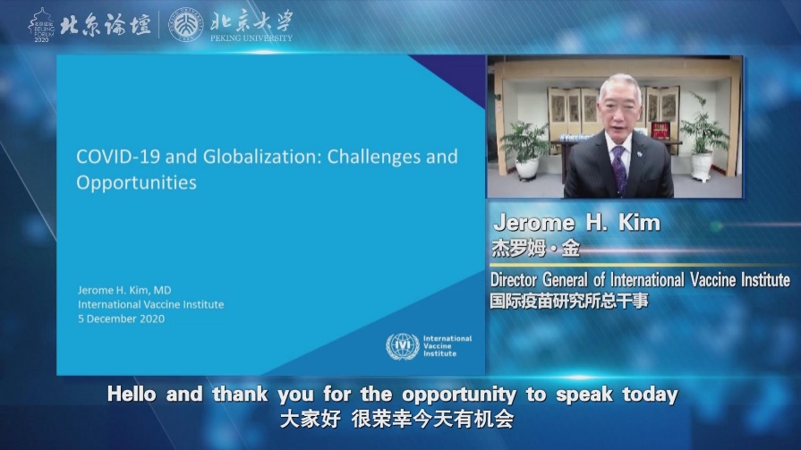 杰罗姆•金探讨了全球化在新冠疫情问题中的得与失。交通便利性与经济全球化放大了疫情的负面影响,但全球合作对疫苗研发的极速推动体现了全球化的巨大优势。新冠肺炎疫苗的研发是在全球进行的,其生产也会在全球各地进行。他表示,我们必须相信国际主义和全球化,以透明、合作的方式,共同推动疫苗作为全球公共产品的研发,并最终取得公共卫生的胜利。