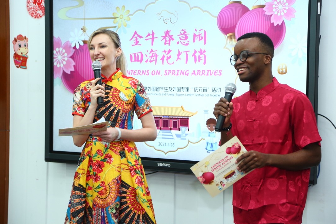 金牛春意闹,四海花灯俏;月圆人团圆,五洲亲如家。辛丑牛年迎来第一个月圆之夜,上元佳节如期而至。2月26日,2021年北京大学外国留学生及外国专家“庆元宵”活动在北京大学中关新园5号楼学生共享空间举行。本次活动由北京大学国际合作部留学生办公室与北京大学会议中心中关新园管理部共同举办,于元宵佳节之际为在校外国留学生及专家学者带来一场蕴含温暖与希望的文化“家宴”。
