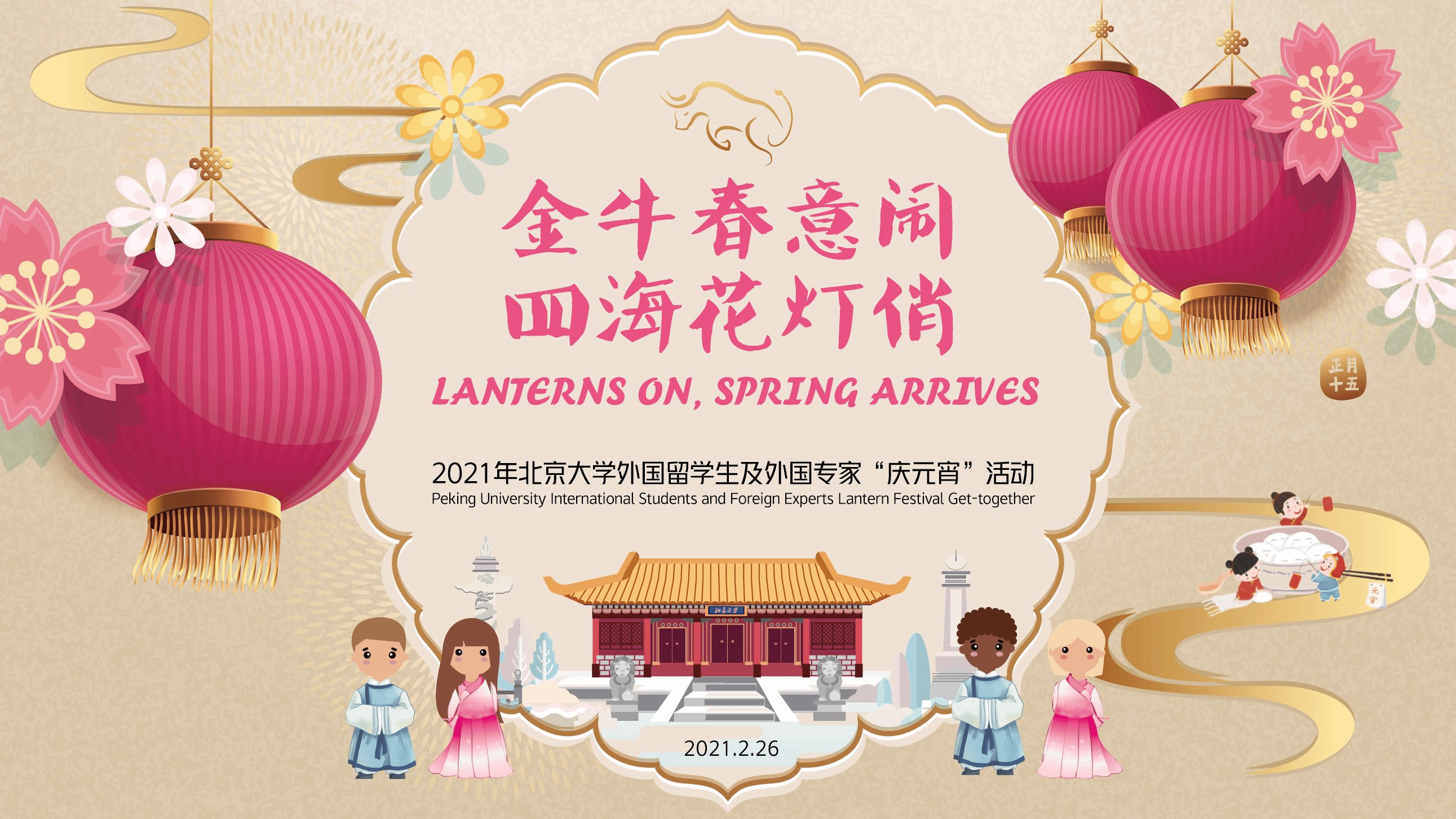 “金牛春意闹,四海花灯俏”2021年北京大学外国留学生及外国专家“庆元宵”活动在欢声笑语中落下帷幕。团圆佳节,万家灯火阑珊,春启之时,柳上月色婵娟。斗杓东指,天下皆春,身处异乡的外国留学生与专家们齐聚一堂庆元宵,体味“四海一家”的真挚情谊,共同点亮心中希望的明灯,播下春回大地的美好愿望。