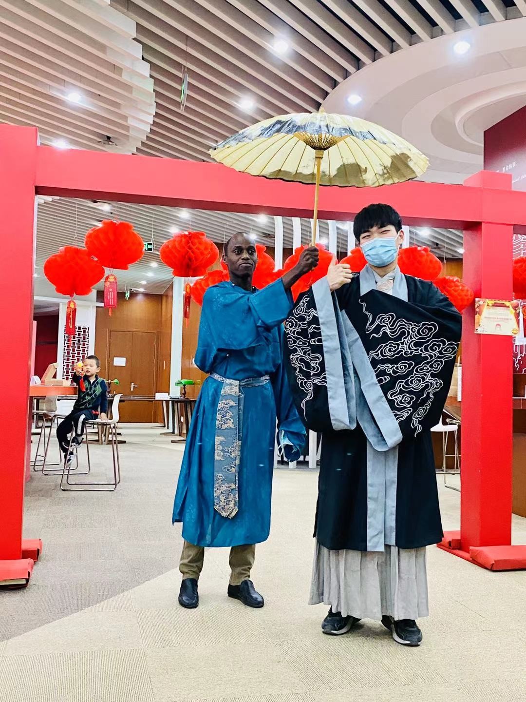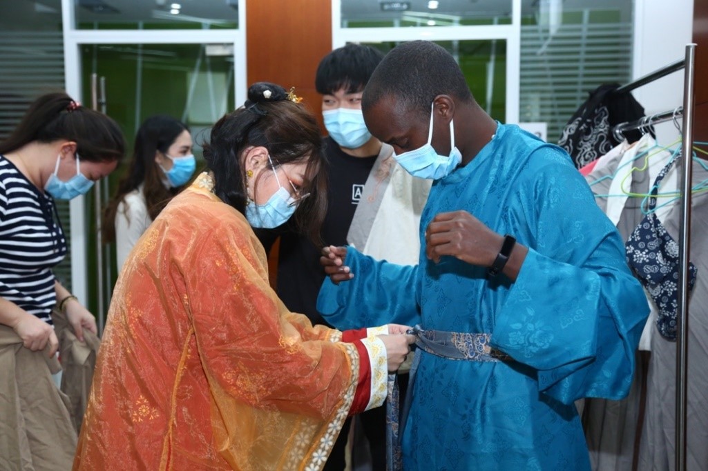 古人云,汉服之美谓之华。曲裾、直裾、襦裙、圆领袍衫……,汉服将中国服饰的古典、含蓄、轻盈之美体现地淋漓尽致。留学生同学们穿上美丽的汉服,学着模仿古人的礼仪姿态,感受衣冠华美、古色古香的中国韵味。