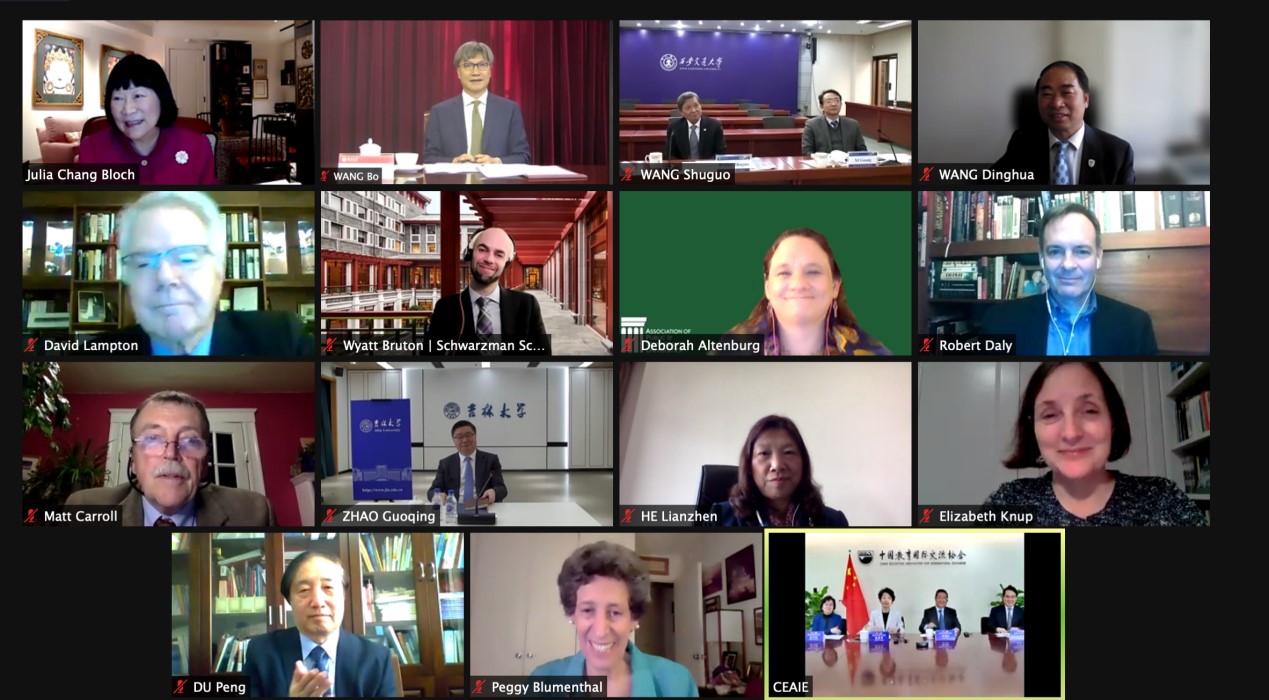 中国教育国际交流协会会长刘利民在总结中说道,中美两国教育合作硕果累累,来之不易,需要我们共同维护;中美两国人民有着友好交往传统,两国民间交流,特别是教育交流不应受到政治关系起伏的左右。希望与美方发言嘉宾所在机构合作,加强中美教育界坦诚对话,引导中美教育交流重回正轨,深化两国高校务实合作,推动两国师生交流、人才联合培养和科研合作,促进中美青年交流互鉴,不断夯实中美友好的民众基础,促进中美关系向好发展和世界和平。