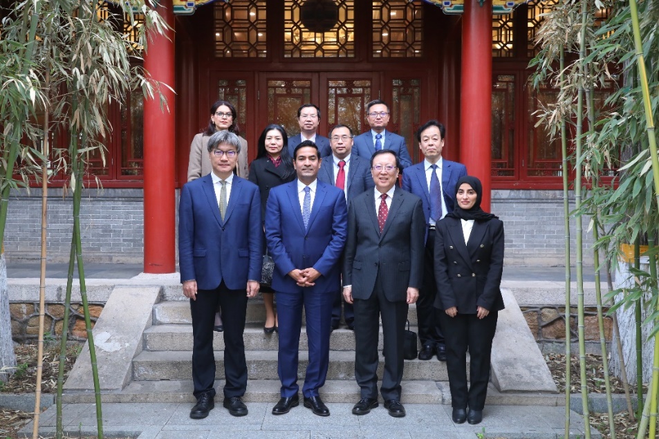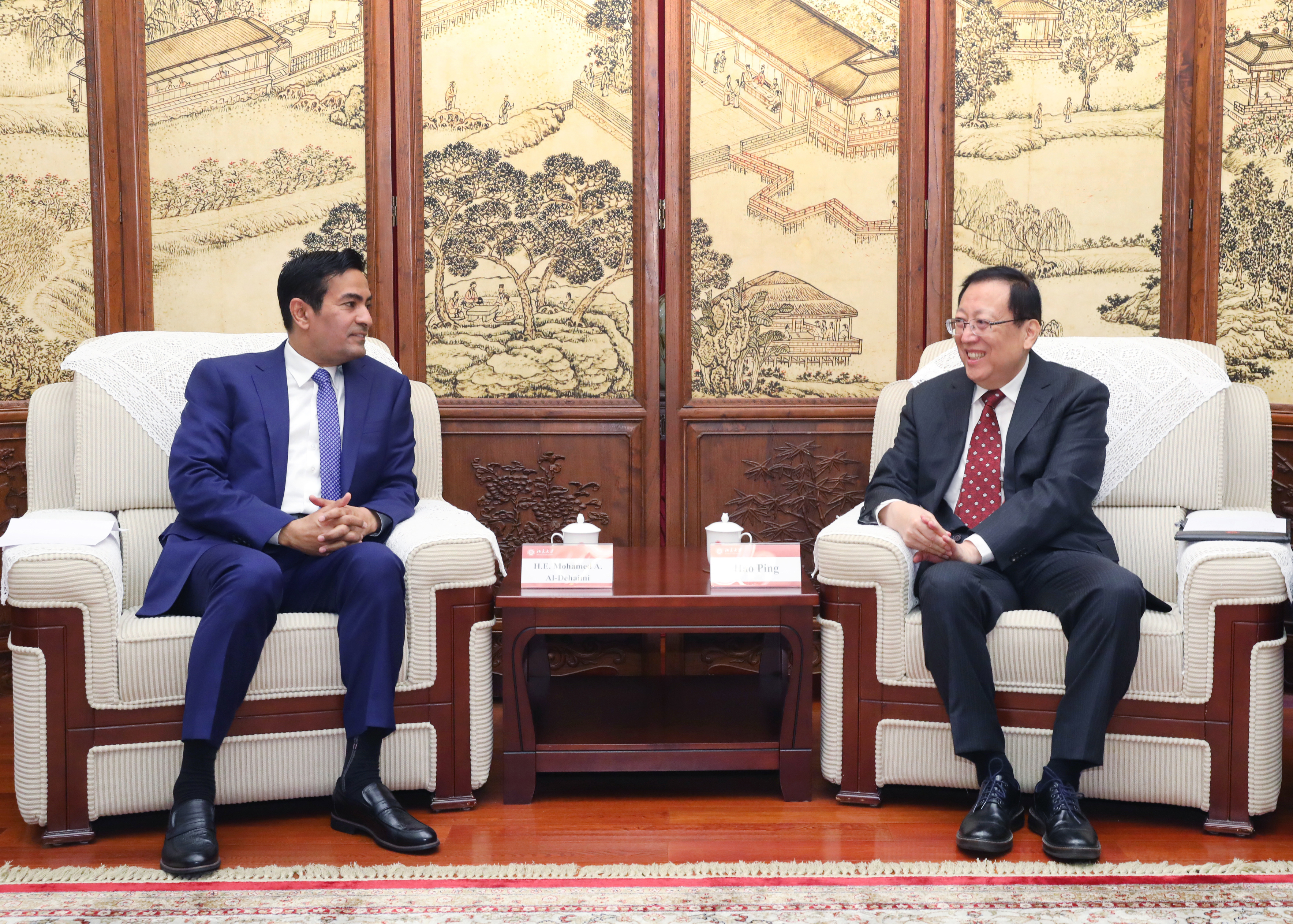 4月2日上午,卡塔尔驻华大使穆罕默德·杜希米(H.E. Mohamed Al-Dehaimi)访问北京大学。北京大学校长郝平、副校长王博在临湖轩中厅会见来宾。