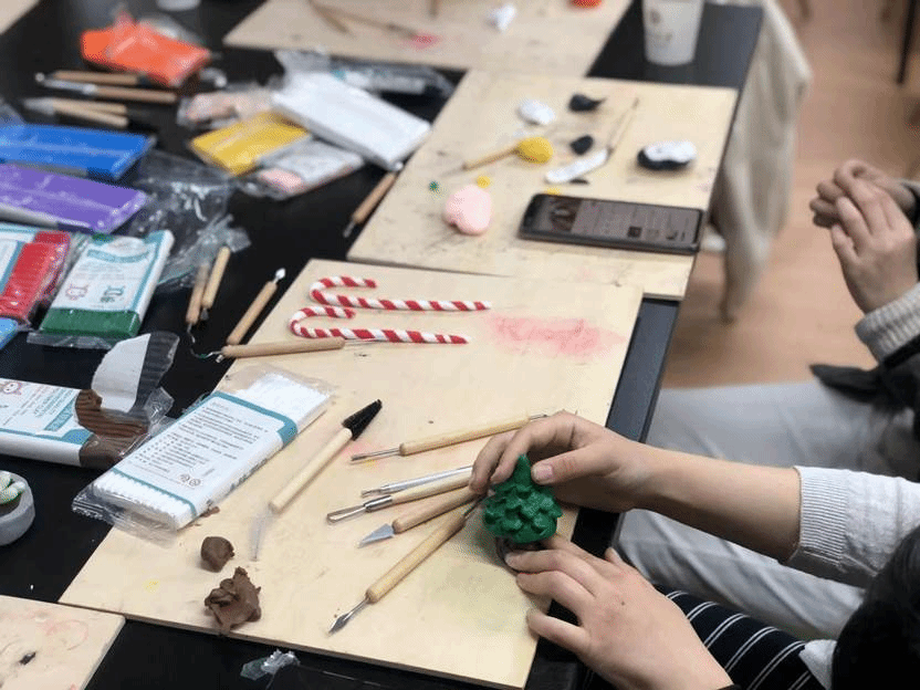 多种风格,多样设计,在我们的下午茶时间里,大家沉心创作出属于自己独一无二的作品。窗外花香正浓,屋内气氛恰好。在这一场轻松惬意的下午茶中,每位同学放松下来,全身心投入到这场有趣的活动中。在舒适的静谧中,大家用软陶进行交流,用茶点进行互动,在这一场轻快的线下交流会中,放松自己,了解信息。