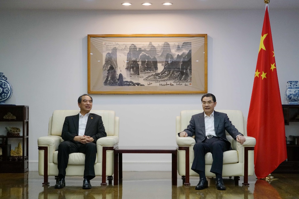 在中国驻日本大使馆,吴江浩大使热情接待了龚旗煌及代表团一行。龚旗煌介绍了北大对日交流合作情况,分享了合作经验与未来展望。吴江浩高度评价并感谢北大为推动中日交流所作贡献,表示将全力支持北大与日本高校和研究机构交流合作。