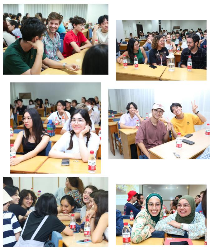 迎新会邀请中外“老生”从自身角度分享他们在北京大学的生活与学习经验。他们结合自身经历,向交换生们介绍了北大的校园文化、实用妙招、学术氛围以及应对学业压力的方法等。通过与学长学姐的互动和交流,学生获得了更多实用的建议和心得,为在北大的学习生活做好准备。