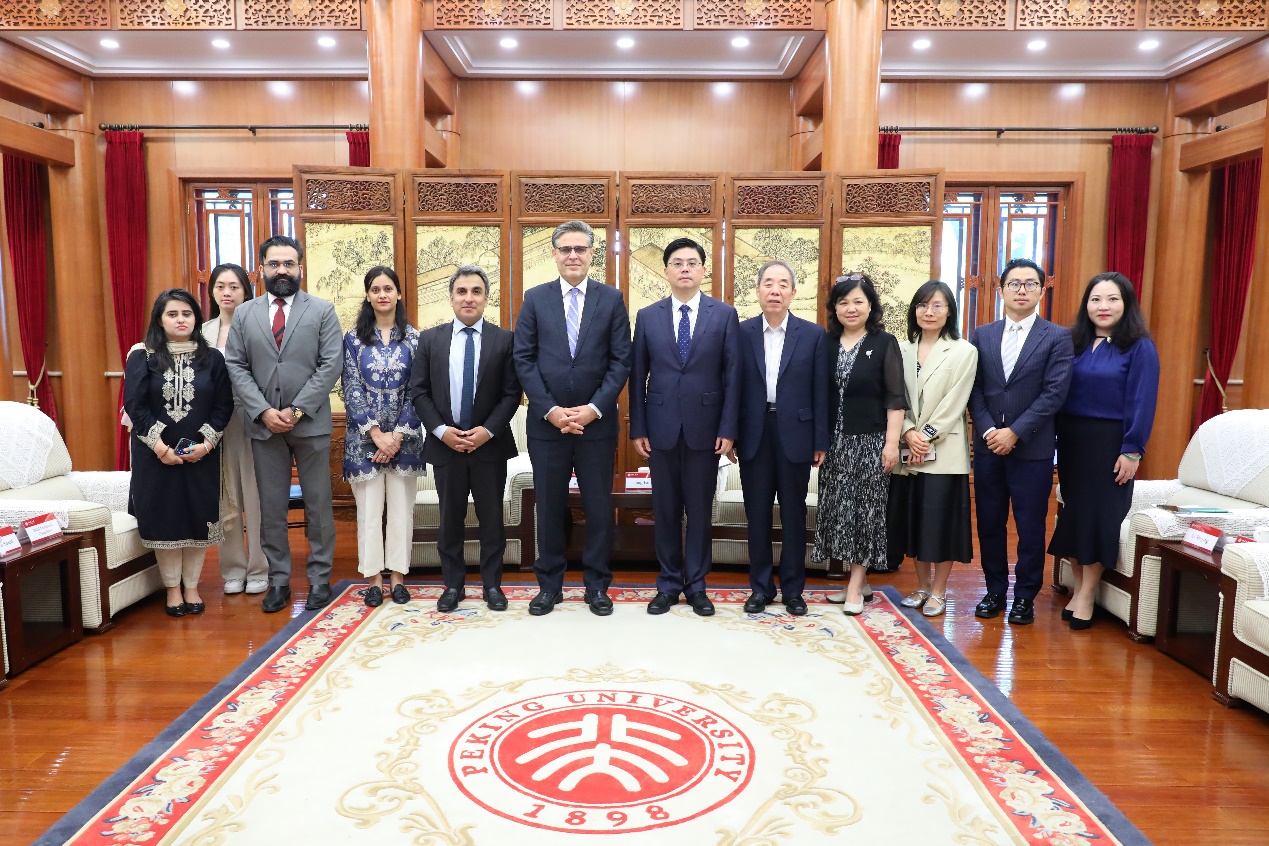 6月22日上午,巴基斯坦驻华大使卡里尔·哈什米(Khalil Hashmi)一行访问北京大学。北京大学党委常委、副校长方方在临湖轩会见来宾一行。