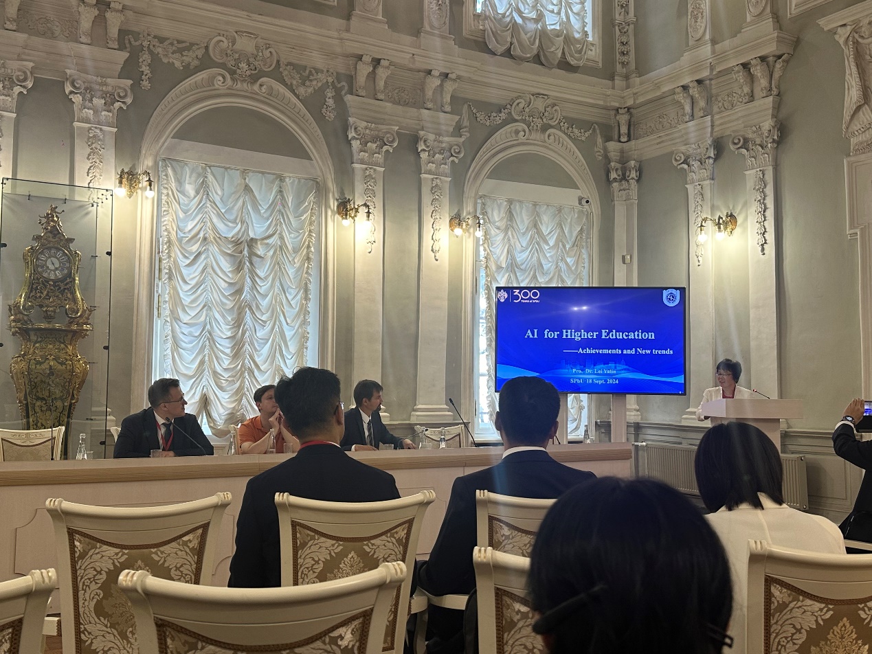 9月18日,宁琦出席纪念圣彼得堡国立大学成立300周年校长论坛,在论坛开幕式发表题为“人工智能与高等教育未来”的报告。报告从人工智能助力“因材施教”,激发学生创新潜能;打破学术界限,促进学科间交叉融合;拓展大学间的合作交流模式,促进高校间搭建国际交流新平台三方面介绍了北京大学深入推进人工智能技术赋能高等教育的实践经验。宁琦表示,北大希望携手全球高校,为世界高等教育的发展贡献力量。