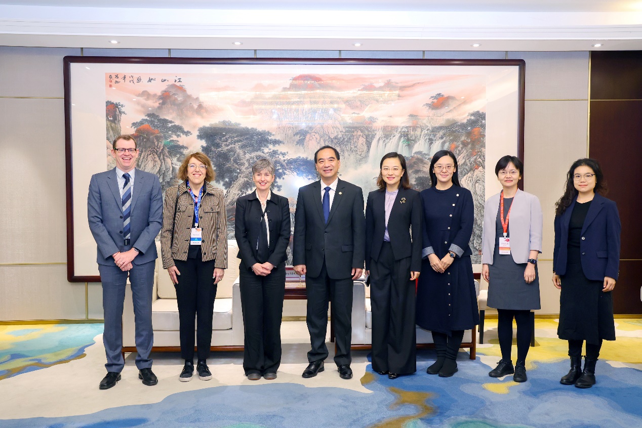国际关系学院、教务长办公室、国际合作部、数智教育发展国际大学联盟等相关部门院系负责人参加会见交流。