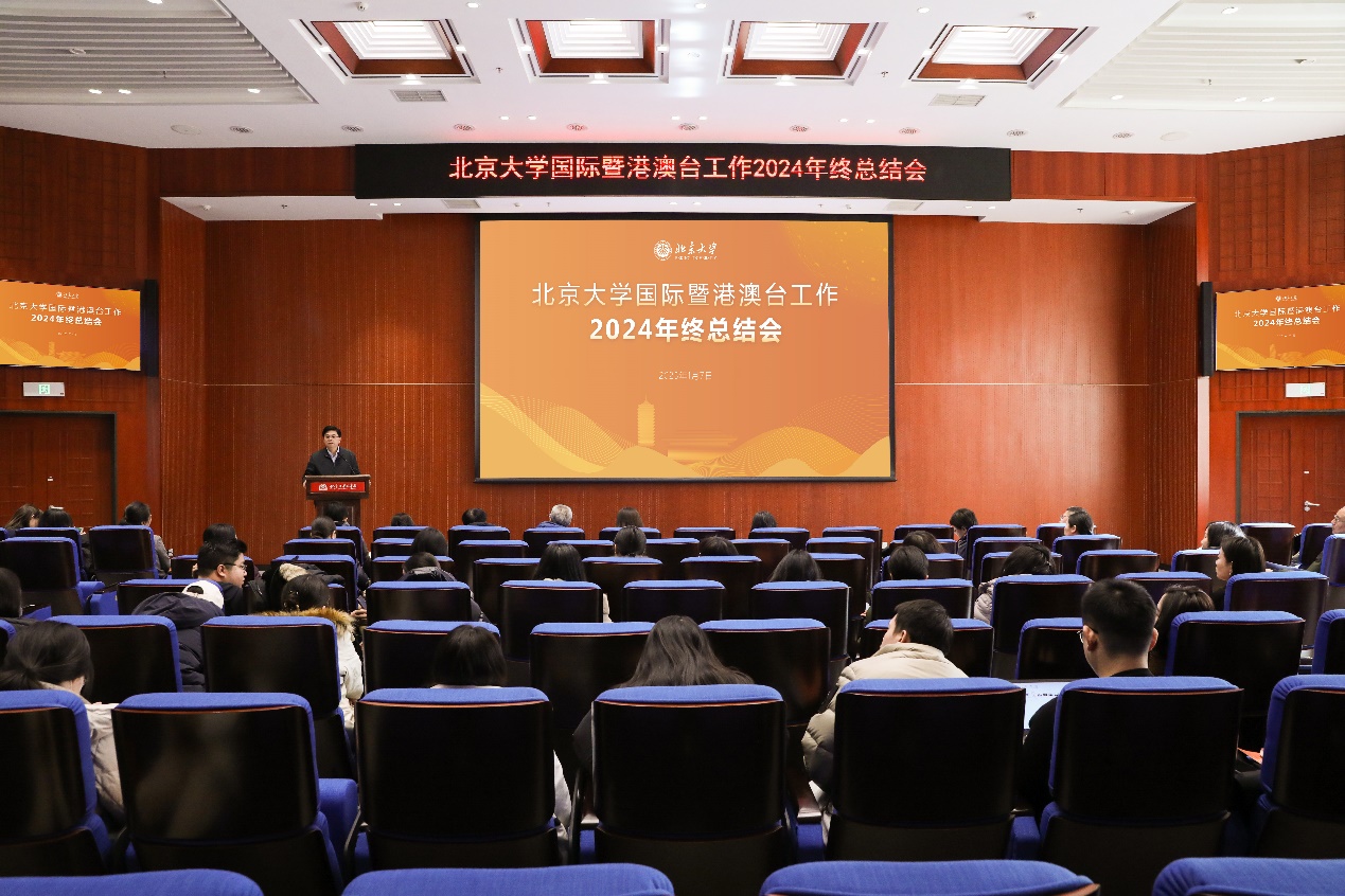 1月7日,国际合作部和医学部国际合作处联合召开北京大学国际暨港澳台工作2024年终总结会,会议在图书馆北配殿举行。北京大学党委常委、副校长方方出席会议并讲话。