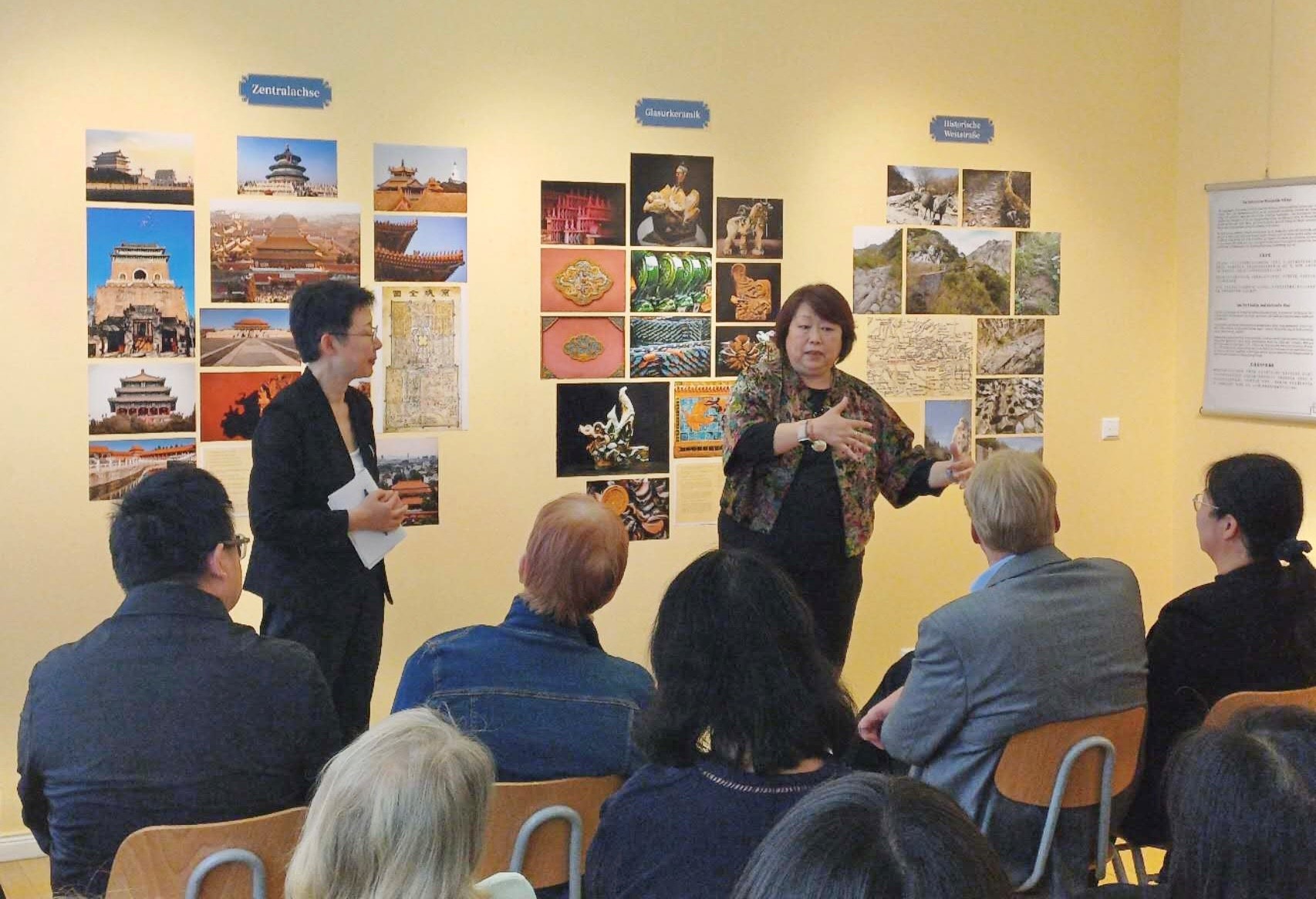 柏林自由大学孔子学院潘璐院长在介绍中强调,本次展览以北京中轴线为切入点,揭示了故宫等皇家建筑与京西琉璃渠村的深厚渊源——数百年来,这座山村始终为紫禁城提供着象征皇权的琉璃构件。展览通过“荒野寻珠”小组的镜头,记录了琉璃渠村从传统官窑停烧到文化复兴的转型历程,展现了民间匠人守护文化遗产的执着精神。