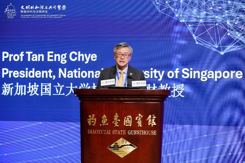 龚旗煌在致辞中指出,北京论坛自2004年创办以来,始终以“文明的和谐与共同繁荣”为宗旨,构建起跨地域、跨学科、跨文化、跨语言的学术共同体。当下,面对数智浪潮带来的深刻影响,大学应主动承担文明传承和创新的使命,以开放办学开创文明交融新格局,以技术赋能搭建文明互鉴新平台,以智慧育人肩负文明共生新使命。希望本届论坛继续发挥好桥梁作用,共同推动落实四大全球倡议,为构建人类命运共同体作出新的更大贡献。