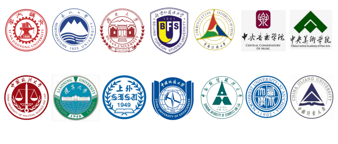 北京大学、中国人民大学、清华大学、北京航空航天大学、中国农业大学、南开大学、哈尔滨工业大学、复旦大学、同济大学、浙江大学、厦门大学、山东大学、中山大学、华南理工大学、西安交通大学、东北大学、湖南大学、北京外国语大学、中国传媒大学、中央音乐学院、中央美术学院、中国政法大学、辽宁大学、上海外国语大学、中国地质大学(北京)、中南财经政法大学、西北大学、中国计量大学