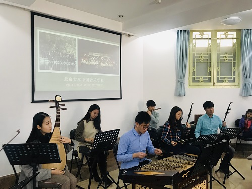 中乐社团的学生代表首先进行了一场以中华传统民乐知识为主题的讲座,系统介绍中华传统民族乐器的历史、门类以及特点;随后,通过现场乐器展示(扬琴、古筝、琵琶、二胡、长笛、葫芦丝等),示范演绎不同曲目,展现不同乐器各异的音韵。声音清脆的扬琴,浑厚的古筝,圆润的琵琶,悠扬的长笛,清脆的葫芦丝,演奏出一首首优美动听的古典乐曲,时而高亢低回,时而轻快抒情,时而意境悠远,韵味无穷。