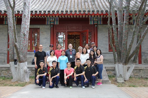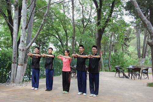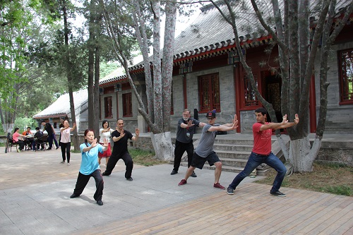 表演过后,在彭芳老师的耐心教导下,大家学习了“太极拳八式”的入门动作。未名湖边,背向精致古雅的建筑,宁静的院子里,葱茏的大树下,大家随着太极拳动作的起伏放松了身心,亲身感受太极拳调养气息的功效,体会到中华武术刚柔并济的特色,纷纷赞叹中华武术的博大精深。