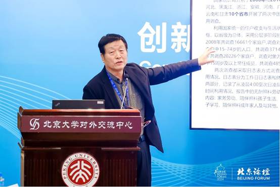 The panel first explored the theme, “Work, Family and Gender Equality.” Professor Liu Aiyu from PKU’s Department of Sociology drew links between declining birth rates and factors like income gaps, shift in gender attitudes and fertility practices, as well as population mobility and urbanization.
