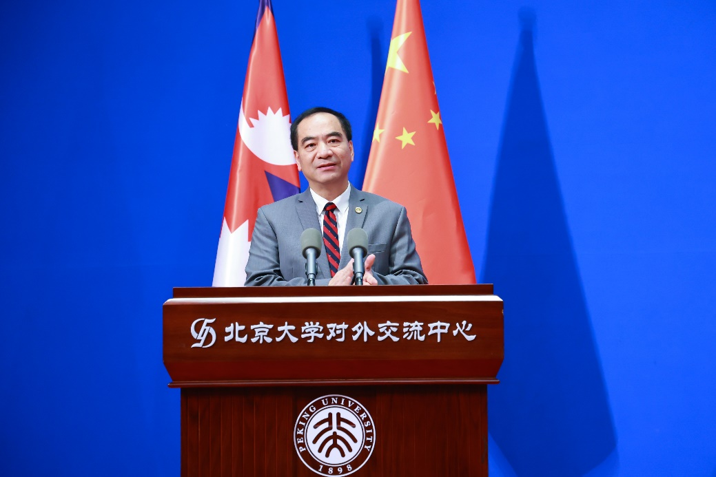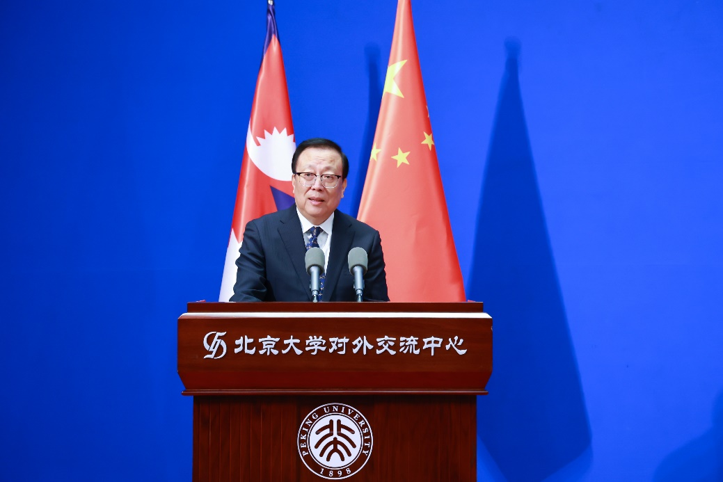 Hosted by Hao Ping, Chair of the University Council, the event was attended by over 200 students, faculty, and officials, including Peking University President Gong Qihuang and Vice Presidents Ning Qi, Dong Zhiyong, and Fang Fang. Hao Ping reflected on the strong diplomatic ties between China and Nepal, established in 1955, and how it has become a model for win-win collaboration based on the “Strategic Partnership of Cooperation for Development and Prosperity.” He emphasized that the visit would enhance collaborations between Peking University and Nepalese universities, fostering exchanges in science and technology, culture and education.